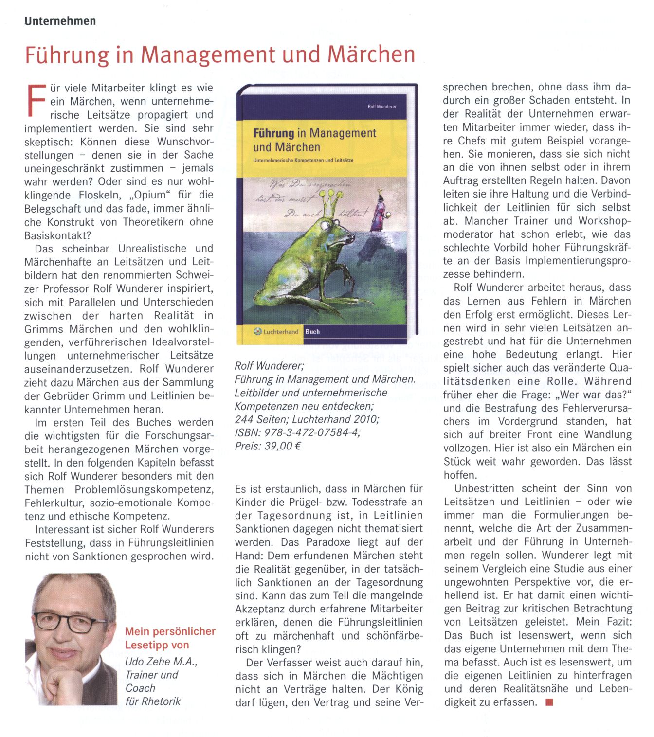 Veröffentlichungen Ich freue mich, Ihnen hier Veröffentlichungen in den Medien zu präsentieren. Ihr eigenes Urteil bilden Sie sich natürlich am besten, wenn Sie die Qualität meiner Trainings und Dienstleistungen selbst für sich nutzen! Führung in Management und Märchen